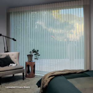 The innovative, totally hidden headrail system ensures easy, reliable operation. Luminette® Privacy Sheers are ideal window coverings for sliding glass doors or expansive windows. Vertical blinds have come a long way from PVC materials. Create sheer elegance in any room with Luminette® drapery-like vertical sheers.