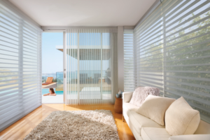 Luminette® shadings are soft, elegant sheers curtain-like in appearance. Hunter Douglas Luminette® Window Shadings are soft and sheer with tailored fabric vanes that rotate to provide the perfect amount of light and privacy. If you have a patio or terrace with sliding glass doors in New York City, Luminette® sheer window shadings are an excellent window covering solution. Combine custom draperies with your window sheers for a full window treatment look.
