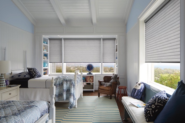 Sonnette Cellular Roller Shade possibilities are endless. Hunter Douglas cellular shades offer the simplicity of a roller shade with the benefits of stylish cellular shades with energy-efficient construction. The soft curves provide character and ambience to any room while helping you reduce energy bill any time of year.